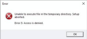 “Unable to execute file in the temporary directory. Setup Aborted.