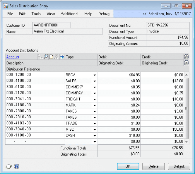 4. The enhancement will update the Posting Accounts of each Sales Invoice and Sales Return in the Batch in the following manner: