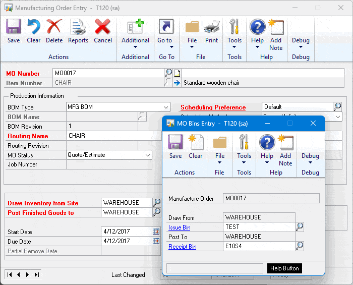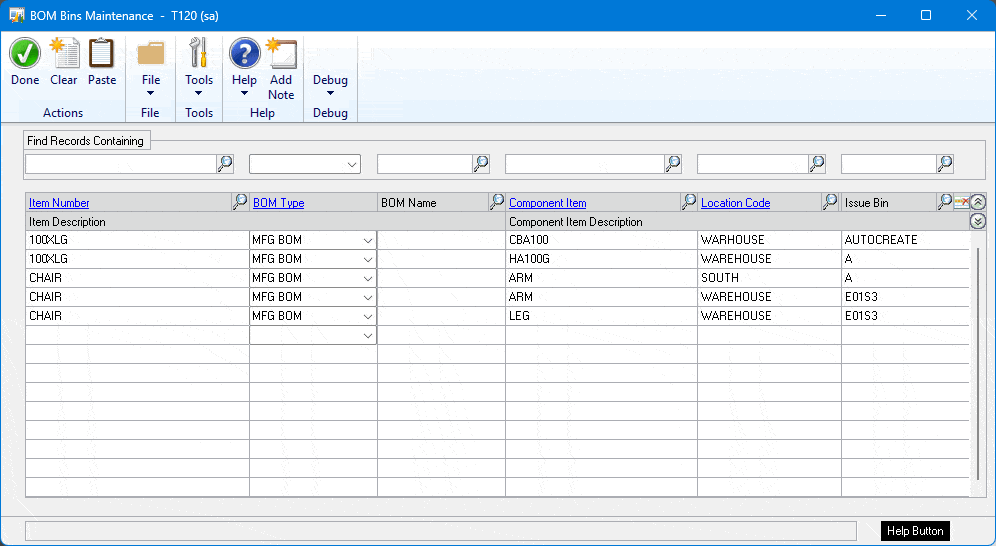 * NEW Module – BOM BINS: Adds the ability to specify a Material Issue Bin at the BOM-Component level. When present this bin will be used rather than the Item-Site Material Issue Bin. This gives you the ability to specify a Material Issue Bin for a Component that is different depending which finished good is consuming it. This module also adds “MO Bins”, which adds the ability to specify a Material Issue Bin and Receipt Bin per Manufacturing Order. Additionally, the logic for performing the bin selection is contained in a SQL function which can be edited to provide your own custom bin selection logic.