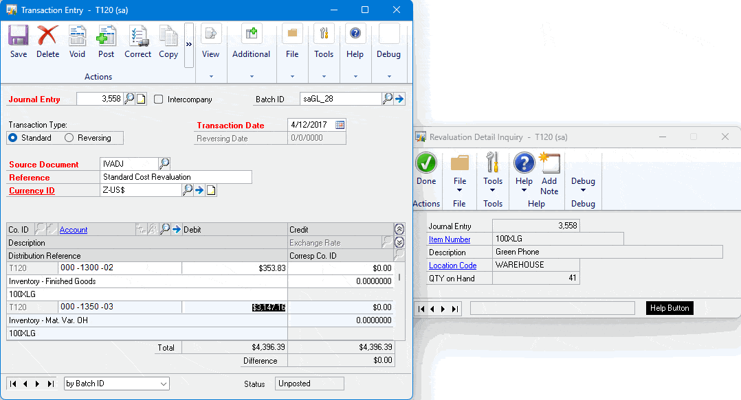 * NEW TWK- Revaluation Detail: the Journal Entry created by a Standard Cost Revaluation does not provide a reference to the Item Number related to each distribution. This tweak tracks the Item Number, Location Code and Quantity On Hand associated with each distribution, and changes the Distribution Reference to contain the Item Number.