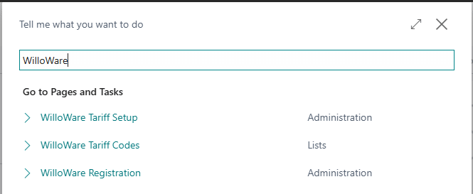 Navigation Navigation Searching for ‘WilloWare’ will help navigate to the pages to setup the extension