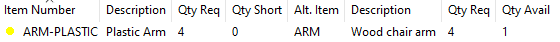 For Alternate items, usage of the item will be based on the Alternate Item Usage setting (either from the Default in Setup, or the setting specific to the Primary-Alternate pair). If you need 8 of the Primary but only have 2, it will use 6 of the Alternate (if “Use Primary AND Alternate” is selected), otherwise it will use whichever item can better meet the requirement.