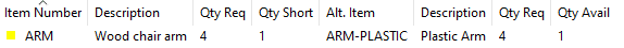 To swap an Alternate/Use Up item quantity for the Primary Item quantity/shortage, double-click on a row in the Picklist Alternates window.