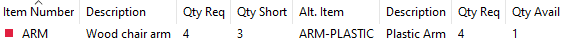 Shortage Check: (1) Are there shortages? (2) Do any of the shortages have Alternate Items? (3) Is there available inventory of any of the Alternate Items?