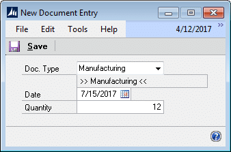 NOTE: GP Manufacturing must be installed to use the Create PO functionality.