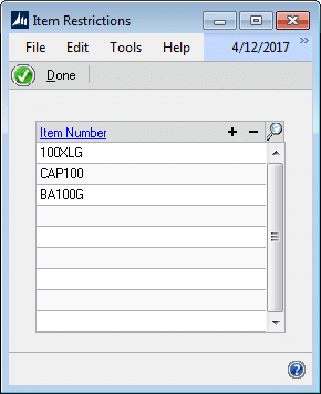- 3 – Restrict by Item Number